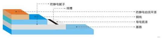適應範圍:電子、微電子、通訊、無塵羞羞视频网站入口室、電子組件生產區,半導體車間、機房、航天等領域需要防靜電的場所,特別適用於對靜電高敏感的電子儀器,集成電路等電子元器件的生產車間和存放區域的防靜電地坪處理。 產品詳情 性能特點 1、擁有環氧樹脂地板優異的機械和抗化學性能; 2、可快速排泄靜電電荷,表麵電阻率達到105-109Ω,地麵電阻排泄符合國際GB6650-86A標準; 3、表麵電阻穩定持久,不受天氣濕度和表麵磨損影響; 4、厚度1mm—5mm。 施工工藝 1.原地麵:打磨、吸塵處理; 2.底 塗:塗刷1-2遍環氧防靜電底漆(參考用量0.2-0.6 kg/㎡); 3.導電銅箔:按設計鋪設接地銅網; 4.中 塗:環氧樹脂中塗自流平防靜 電料刮平(參考用量0.6-0.8 kg/㎡); 5.麵 塗:用镘刀將環氧自流平防靜電料镘塗於中塗之上(參考用量0.8-1.5 kg/㎡) 技術指標